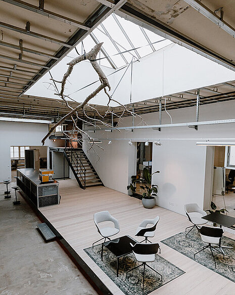 So bleibt die Geschichte des Ortes sichtbar und spürbar, ohne auf moderne Funktionalität zu verzichten. Das Prozesshafte und Unfertige der Atmosphäre soll darüber hinaus eine Werkstattstimmung stimulieren und Impulse setzen, um gemeinsam am Morgen zu arbeiten