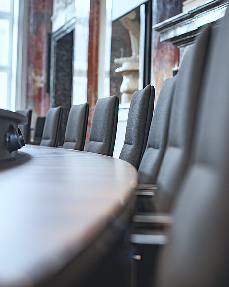 Im Ambiente des prunkvollen Sitzungssaals sollten elegante Sitzmöbel mit einer zurückhaltenden und zugleich wertigen Ästhetik eingesetzt werden. Der von Justus Kolberg entworfene Konferenzsessel Sola fügt sich harmonisch in die barocke Pracht ein und bietet zeitgleich einen prägnanten Kontrast durch seine moderne Gestaltung.