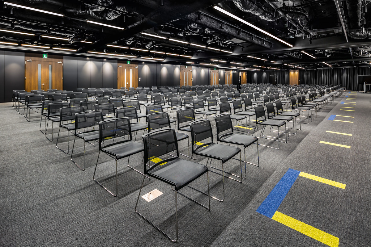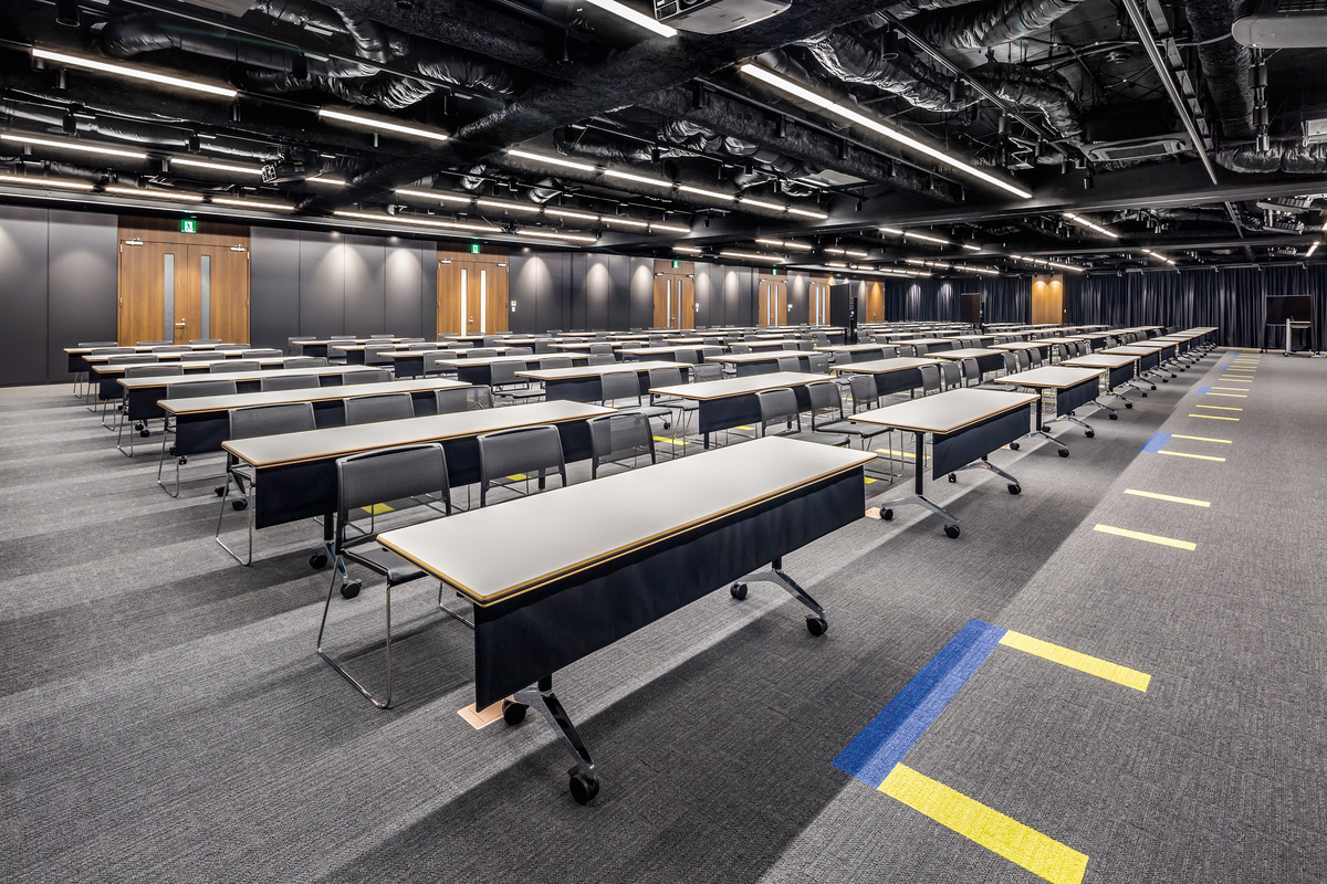 Im Unternehmenssitz der japanischen Sega Sammy Group, die zu den führenden Herstellern von Video-Spielen zählt, setzten die Architekten von Meiho Facility Works in den unterschiedlichen Konferenzräumen auf einen feinen Kanon edler Naturwerkstoffe, die den klar gestalteten Räumen Tiefe und warme Eleganz verleihen. In bewusstem Kontrast dazu ist das Ambiente des großen, multifunktionalen Vortragssaals gehalten, das mit Anleihen aus Industrieästhetik und technoider Kinowelt spielt.