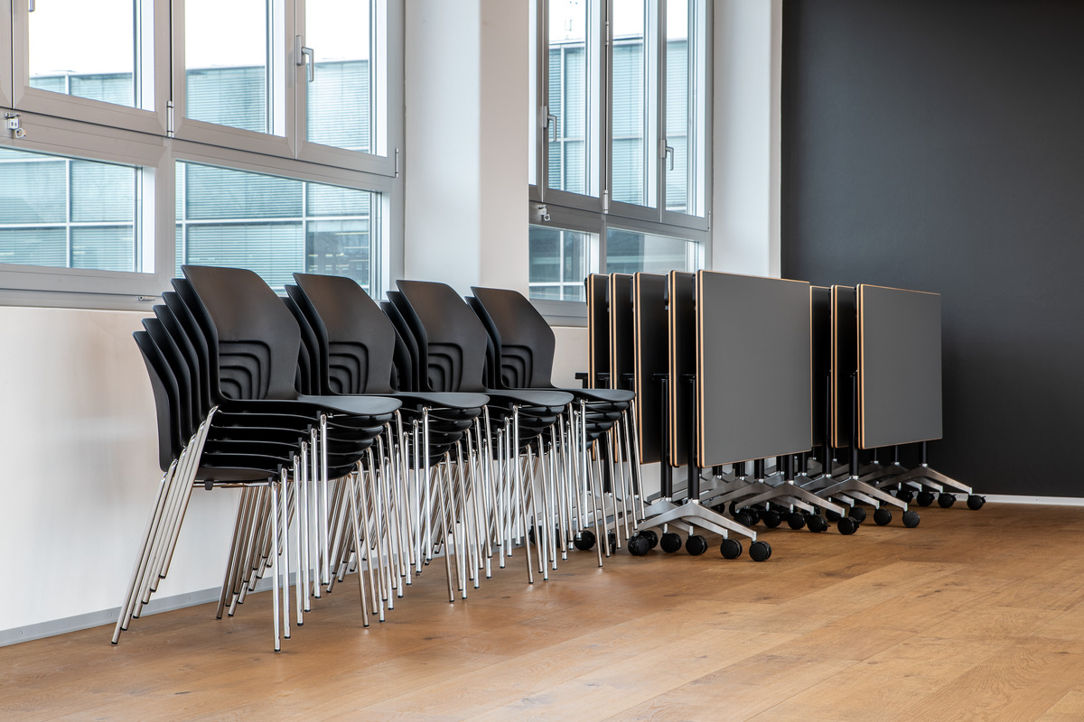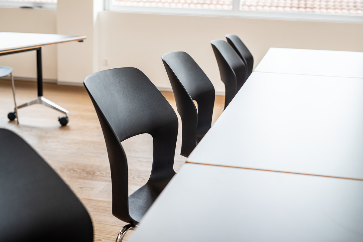 "The transparency of the glass extension at Laubscher reflects the modern production methods employed by this manufacturer of precision parts. The impressive-looking building in the center of the village indicates the importance of this employer for the region. Wilkhahn’s versatile furniture echoes the building’s clear, modernist style."