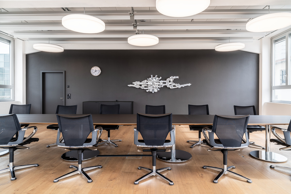 On Lake Biel in the canton of Bern, the Laubscher company - a manufacturer of precision parts for the medical technology, watchmaking and automotive industries - had its company building converted. This created space for spacious meeting rooms, a hospitable cafeteria and a new reception area with a company museum. The conversion was carried out in collaboration with the Biel-based architectural firm Leimer Tschanz, which has already planned and implemented several new buildings on the company's premises. The interior work was carried out by the Gehri company from Aarberg.